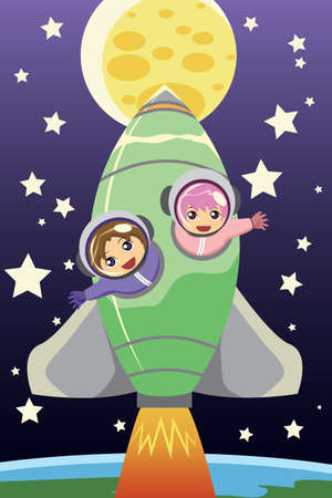 月に宇宙飛行士を目指すかわいい若い女の子のイラストのイラスト素材 ベクタ Image