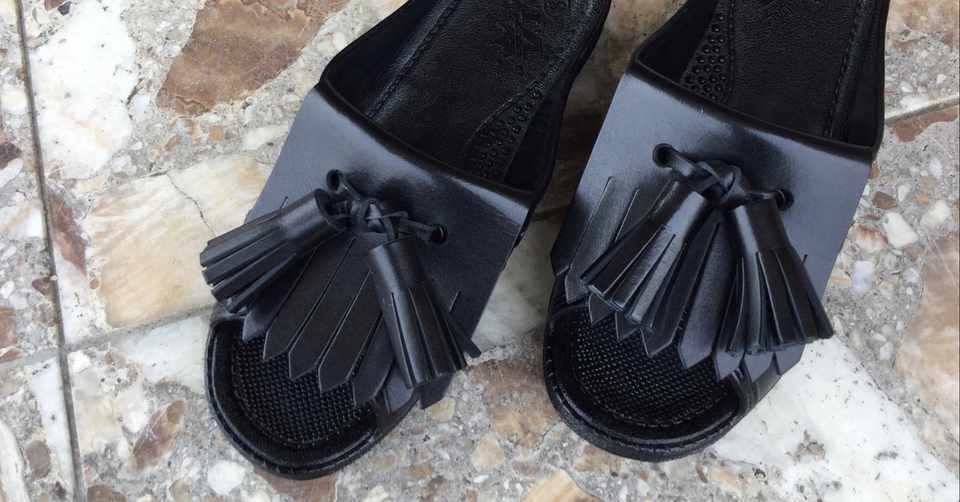 牛革使用の おしゃれ便所サンダル ベンチ イッチのコラボ タッセル ノットのモダンデザイン ファッションプレス