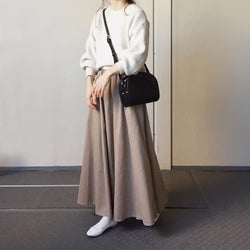 春のカジュアルコーデを格上げ ベージュフレアロングスカート で大人可愛いコーデ モデルプレス